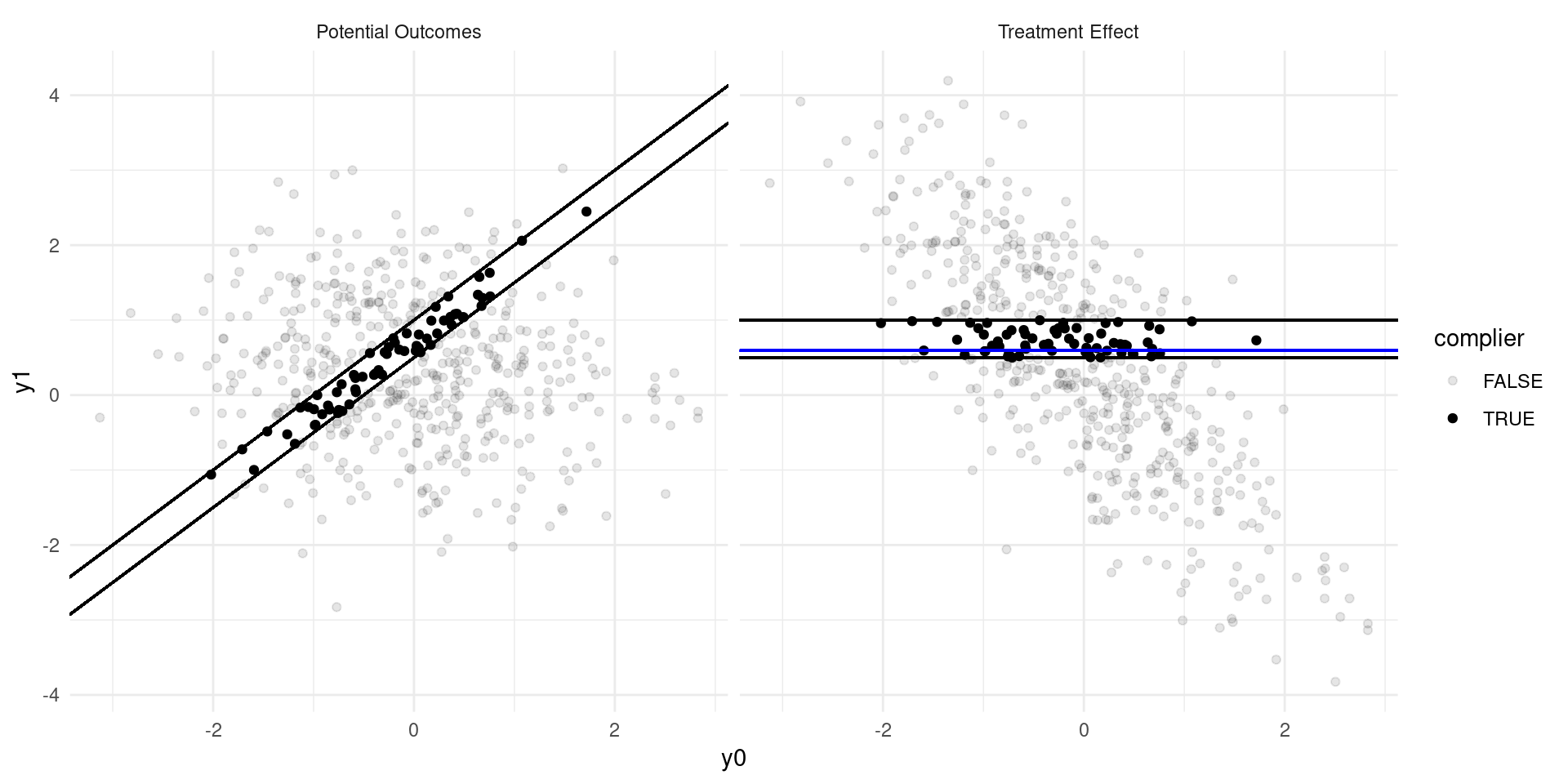 The treatment effect is \(Y_{1} - Y_{0}\) is defined to be heterogeneous