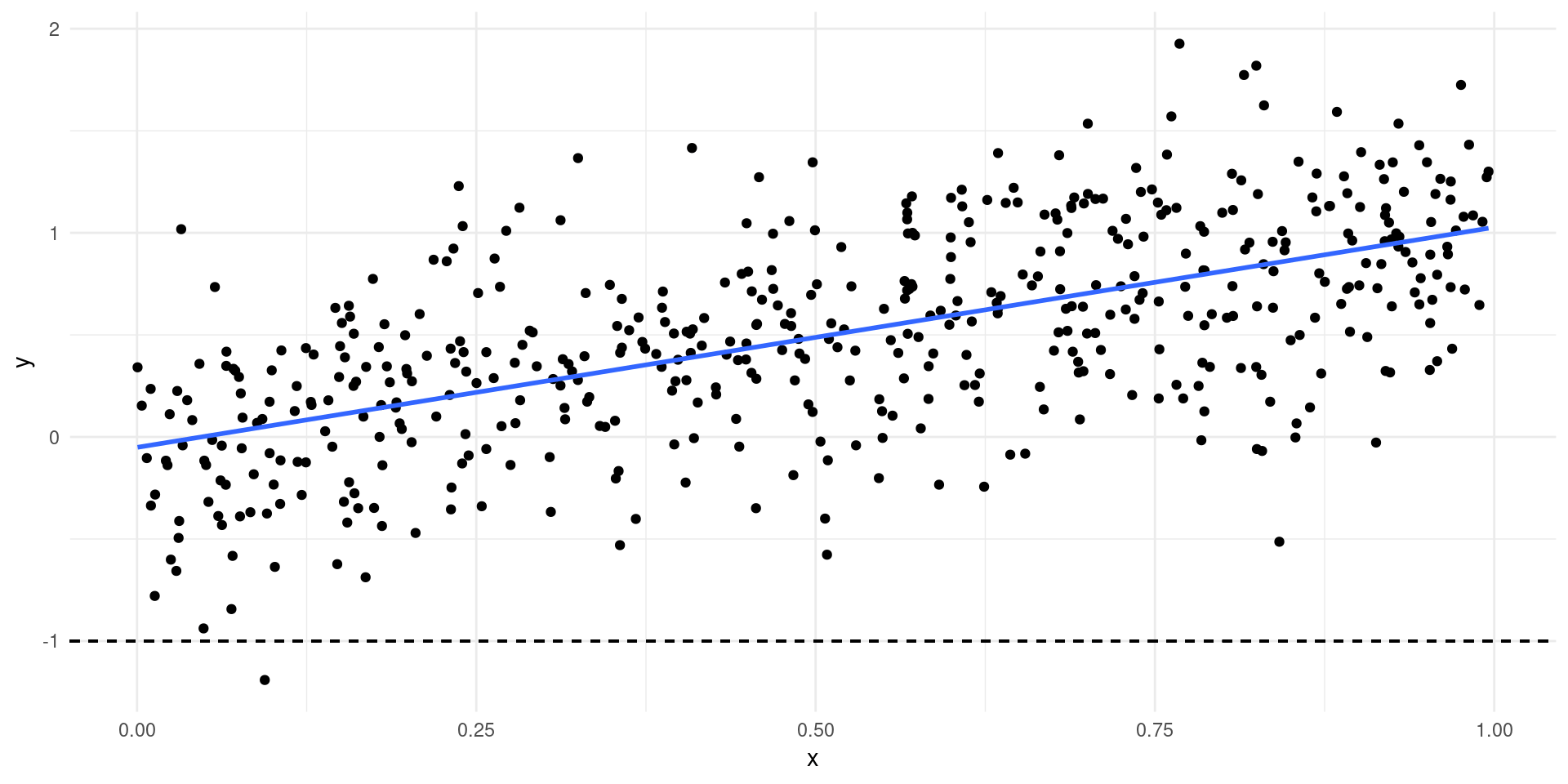 Suppose we estimate: \[ \EE[Y|X] = \beta_{0} + \beta_{1}X\] where \(X\) is scalar, so \(\beta_{1} = \frac{\BB{C}(Y,X)}{\BB{V}[X]}\)