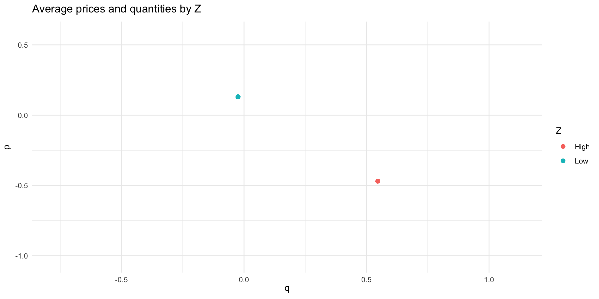 We can use the variation in \(P\) that is induced by \(Z\) to estimate \(\alpha_{1}\)